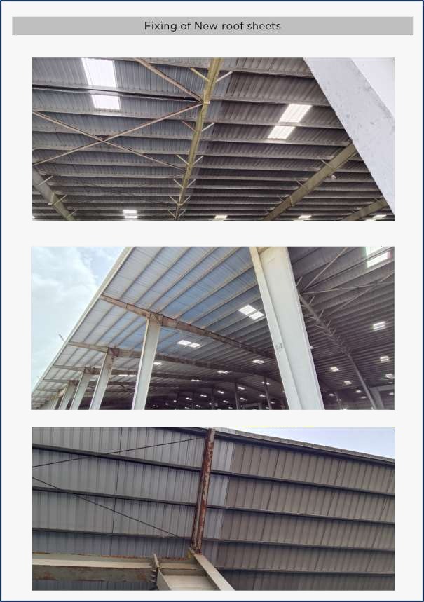 - Civil Works: Roof sheet installation, painting, walkways, mosquito net installation